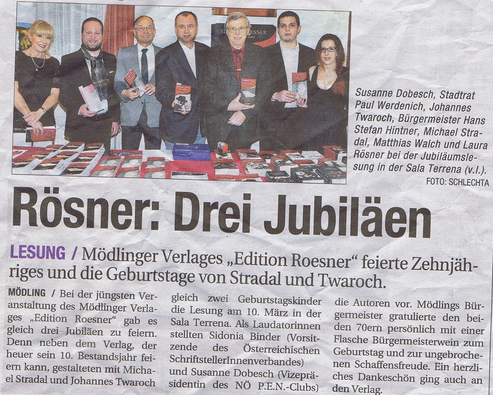 Michael Stradal, 1942 in Wien geboren, in Krems aufgewachsen. Lebt seit 1972 in Maria Enzersdorf. Mitglied des P.E.N.-Clubs sowie von Podium und Vorstandsmitglied im Österreichischen Schriftstellerverband.